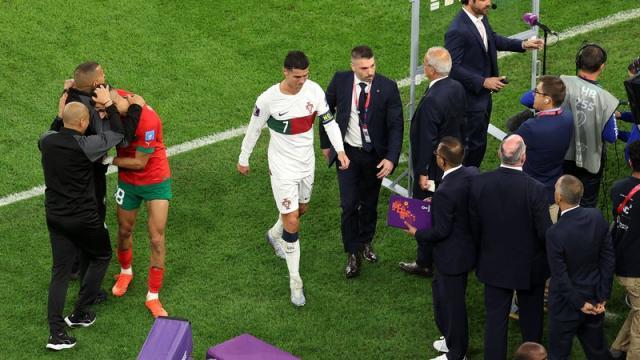 最终,葡萄牙队被淘汰了。第196次上场,C罗超过195战的马来西亚前华裔国脚中卫苏进安,追平196战的科威特前锋穆塔瓦,成为全世界国家队出场次数最多的球员。但对摩洛哥,C罗更想要的是进球,用进球来拯救葡萄牙。可他无力回天,国家队进球数依旧停留在118粒。本届世界杯小组首战打加纳时,他进了一个点球,成了史上唯一一位5届世界杯都进球的球员。可对摩洛哥,他没能打进挽救五盾军团命运的进球。