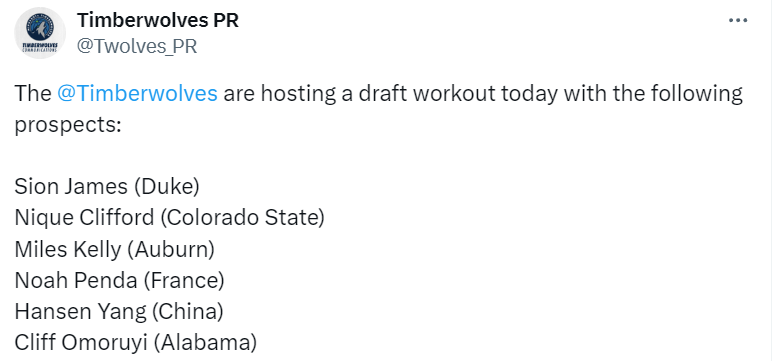 第10支NBA球队!森林狼官宣试训杨瀚森:拥有17号签+31号签