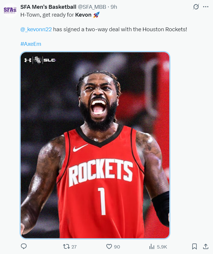 早些时候火箭用双向合同签下了凯文-哈里斯,他上赛季在G联赛场均19.8分7.1篮板3.9助攻1.6抢断,命中率44%,三分球命中率40.2%,火箭这个签约肯定是帮毒蛇引援。此前火箭已经为大卫-罗迪、恩法利-丹特开了双向资质合同,这说明火箭已经完成了阵容的组建。