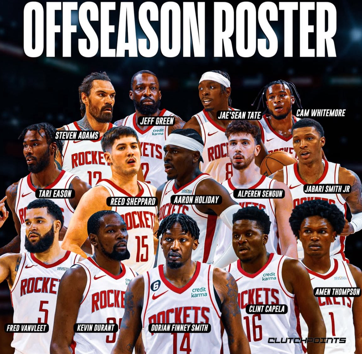 那么火箭队新赛季的14+3名单就已经出炉——